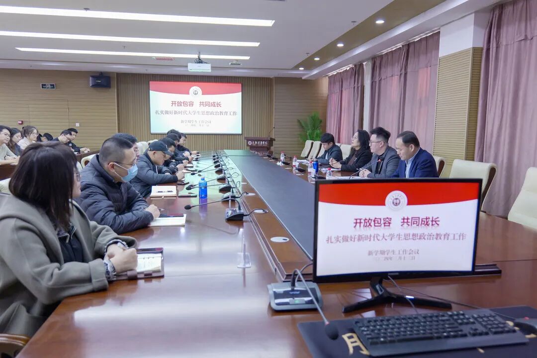 高海英副书记传达了学校新学期中层干部大会的主要精神,详细解读了《2023-2035战略发展规划纲要》中有关学校发展的顶层设计。她强调,学生工作肩负着大学生思想政治教育和日常管理的重任,始终站在育人第一线、铸魂最前沿,学校“开放、包容、国际化”理念代表了学校对待办学的态度和方式。具体到学生工作中,就要坚守“立德树人”初心,牢记“帮助学生健康成长,推动社会发展进步”使命,坚持“面向新时代,要因事而化、因时而进、因势而新;面向世界,要将人类命运共同体思想贯穿在大学生思想政治教育中;面向未来,要注重工作的前瞻性和先导性”。