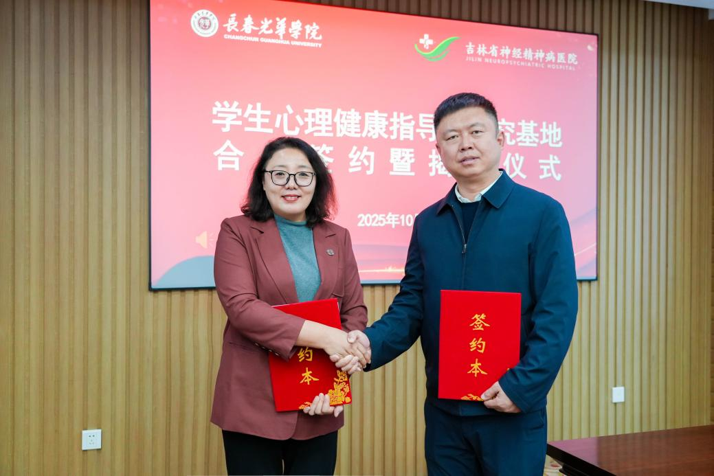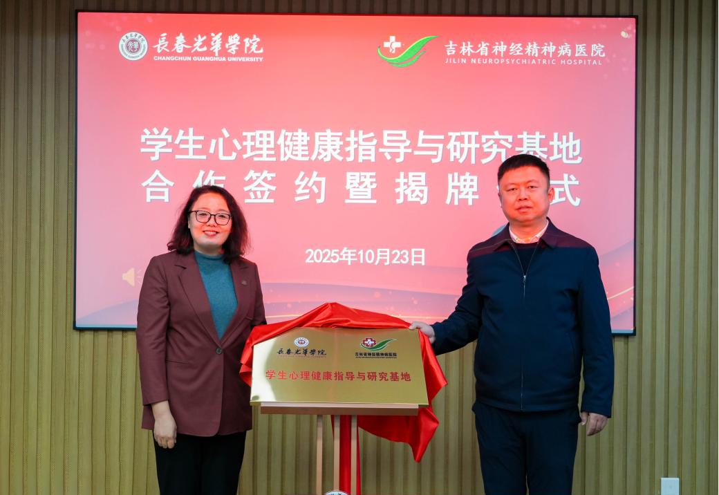 为深入贯彻落实《吉林省推进高校心理健康医校联动工作方案》文件精神,构建学校与专业医院协同联动的学生心理健康工作格局,10月23日下午,我校与吉林省神经精神病医院共建学生心理健康指导与研究基地签约暨揭牌仪式在行政楼第一会议室举行。